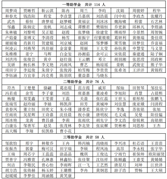 经个人申请、班级民主评议、资格审查、学院评审工作领导小组评审,现将2138cn太阳集团城2025-2026学年本科生国家助学金拟推荐学生名单公示如下: