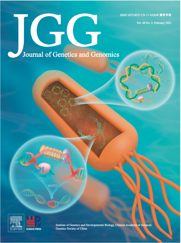 运动发酵单胞菌(Zymomonas mobilis)是一种能够在厌氧条件下直接利用ED途径代谢糖类产生乙醇的细菌,具有乙醇发酵速率高、乙醇耐受性好及生物安全等特点,在生物燃料应用方面具有巨大的应用价值。课题组研究发现CRISPR-Cas系统造成的基因组DNA损伤会高效地被微同源介导的连接途径(MMEJ)修复,并造成部分DNA缺失。而MMEJ系统修复CRISPR-Cas造成的移动元件损伤的效率很低,代表了一种切割后区别自己和异己DNA的识别模式。该成果作为封面文章发表在Journal of Genetics and Genomics杂志上,我校王晓婕博士生为论文共同第一作者。