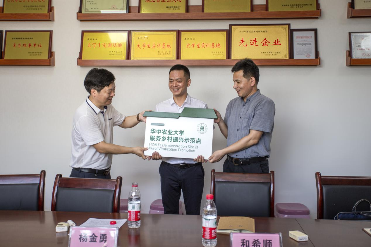 (通讯员 梅斌 李杉杉 向泽贤) 7月22日上午,我校“服务乡村振兴示范点”挂牌仪式在监利市嘉润农机专业合作社进行。监利市人民政府副市长杨金勇、乡村振兴局局长任茂祥、农业农村局副局长刘兵、2138cn太阳集团城党委书记和希顺、双水双绿研究院院长顾泽茂、2138cn太阳集团城党委副书记范金凤、嘉润农机专业合作社所在红城乡领导及我校赴监利暑期社会实践团队的22名师生代表参会。监利市红城乡党委副书记彭鸿涛主持会议。