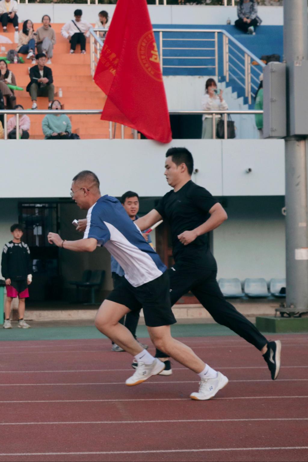 除了以上个人赛程外,我院教职工集体还积极参与了教职工男子组和女子组的4×100米接力以及全体的花样接力比赛。赛场上各位教职工激情澎湃,奋力拼搏,向全校展现出我院教职工积极向上,气势昂扬的精神风貌!