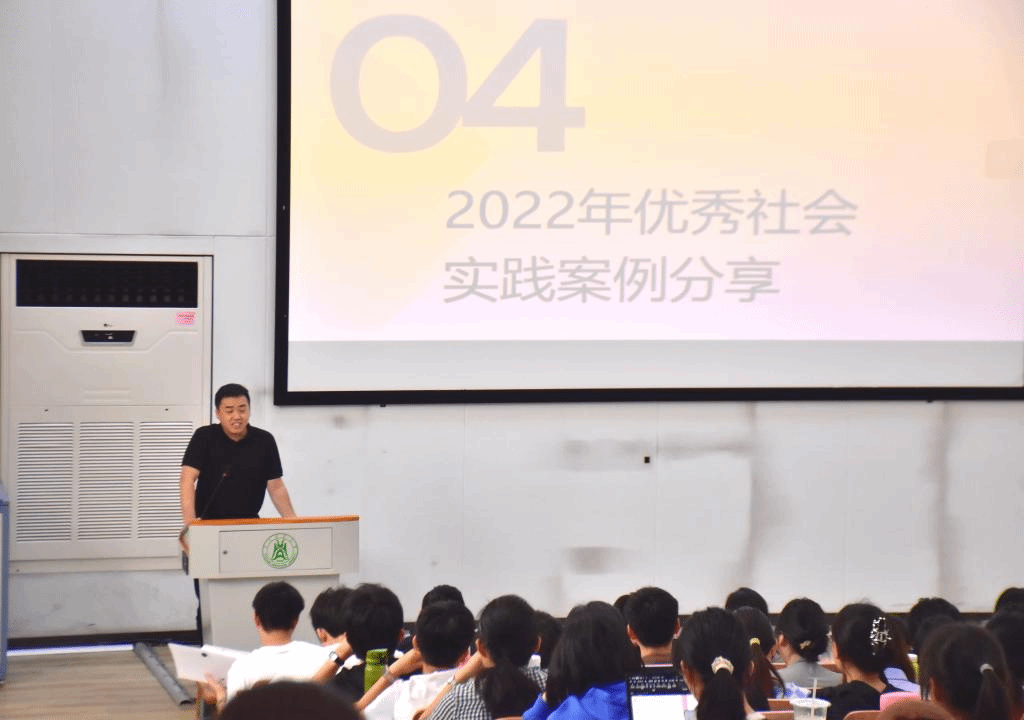 (2022级本科生辅导员王庆鲁讲解社会实践要点 高文博 摄)