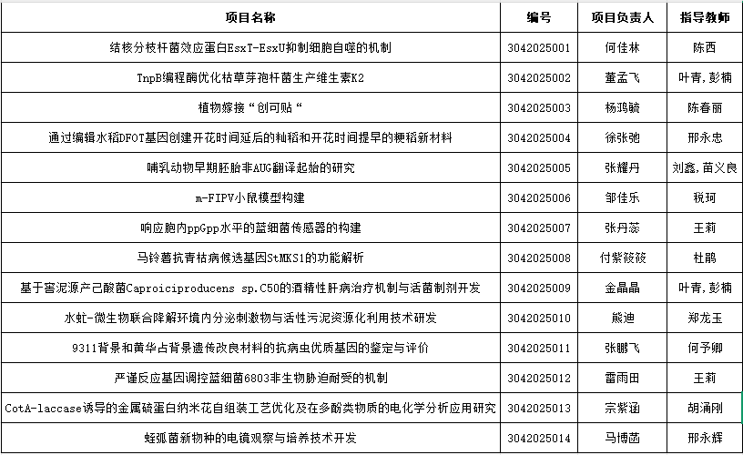 经学生申请、专家评审,拟确定“结核分枝杆菌效应蛋白EsxT-EsxU抑制细胞自噬的机制”等14项为学院本科生科研训练项目拟立项项目。现将评审结果予以公示:
