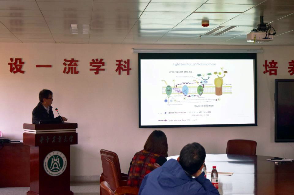 (通讯员李峥)3月25日上午,香港大学生物科学学院林文量副教授参加微生物学前沿论坛,在第一综合楼A202会议室作了题为“叶绿体如何优化能量效率”的学术报告,报告会由我院微生物学科端木德强教授主持。