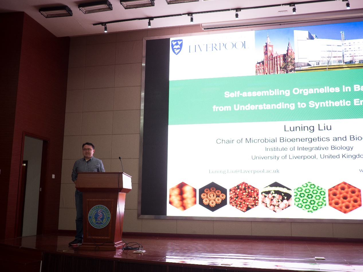 英国利物浦大学整合生物学教授刘鲁宁老师带来了“Self-assembling Organelles in Bacteria: Understanding and Bioengineering”。刘老师介绍了该课题组以模式光合生物蓝细菌、紫细菌、红藻为研究材料,采用分子生物学、生物化学和生物物理方法从分子和亚细胞水平研究羧酶体的合成、结构和功能调节,以及组装和生物合成。同时,介绍了该课题组通过与世界多个课题组的合作,在生物工程改造、生物能源开发以及农作物基因改良提高产量上的进展。