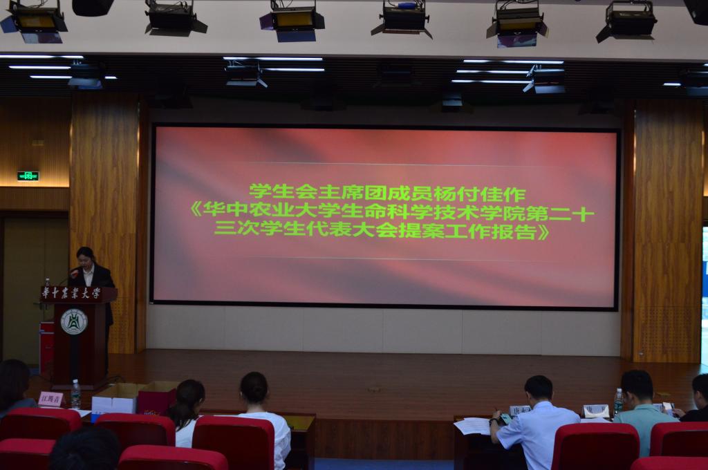 第二十二届学生会主席团成员杨付佳向大会作工作报告(李知仪 摄)