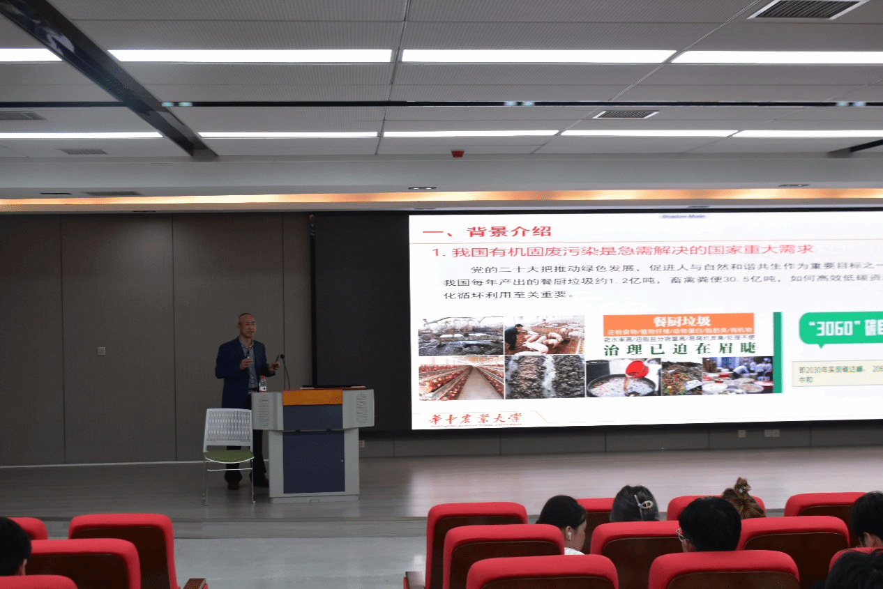 “有机固废污染是急需解决的国家重大需求,如何高效低碳地资源化循环利用至关重要,并且目前我国对蛋白饲料原料和高品质有机肥需求量巨大。如何有效解决以上问题呢?”张吉斌首先从我国在有机固废污染处理和蛋白原料、有机肥需求的现状切入,向同学们介绍了黑水虻研究的重要意义。他谈到,2138cc太阳集团功能微生物与食用昆虫团队在喻子牛教授和他的带领下,寻求探索新的生物技术,开辟新的赛道,将昆虫水虻与功能微生物技术结合协同转化畜禽粪便和餐厨垃圾,在解决环境污染的同时,变废为宝,转化产生的水虻蛋白能缓解我国饲料蛋白短缺,虫粪还可以作为优质的有机肥解决化肥替代问题,形成一套种养结合、资源循环的绿色循环产业链。