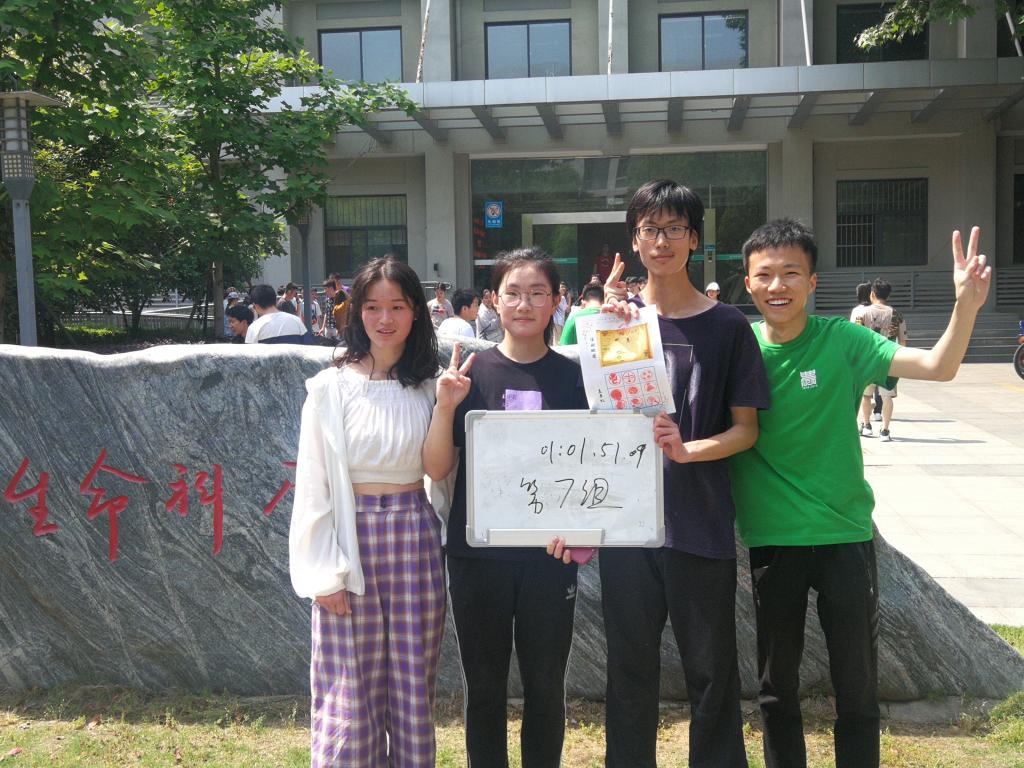 在完成最后一项游戏后,各支队伍收集齐九枚印章回到一综门前,进行签到,结束整个定向越野。最终来自生工1704班的王茜瑛、张敏、霍泽琪和宋豪以1小时1分51秒09的成绩获得了此次定向越野活动的第一名。