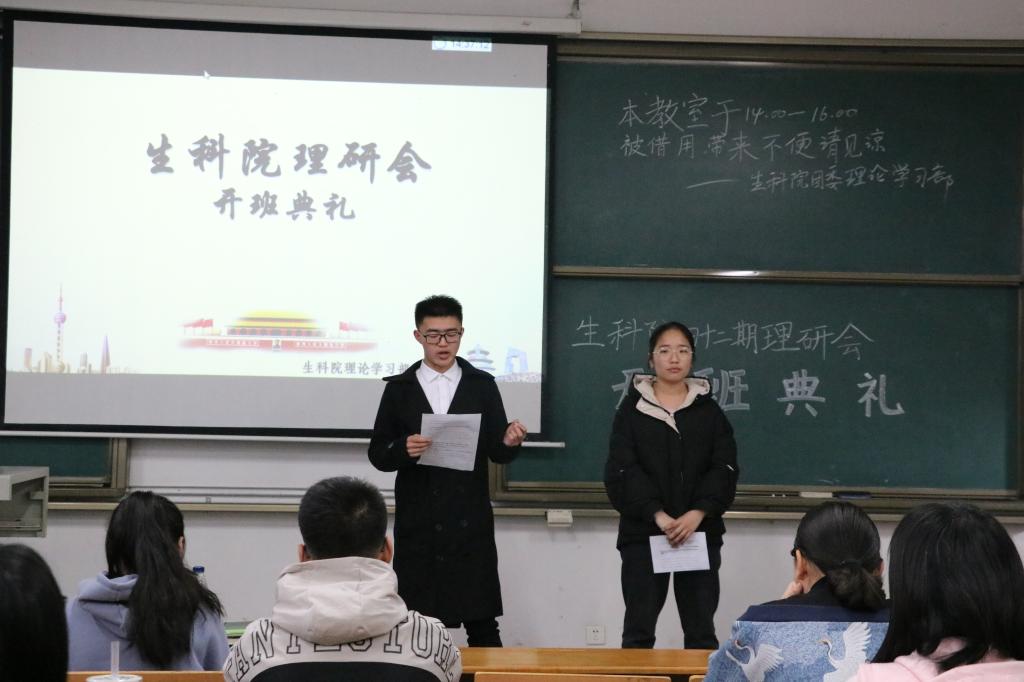 3月16日下午,由理论学习部举办的2138cn太阳集团城第42期理研会开班仪式在四教C111举行。理学部成员张杰、郑雨晴主持该仪式。