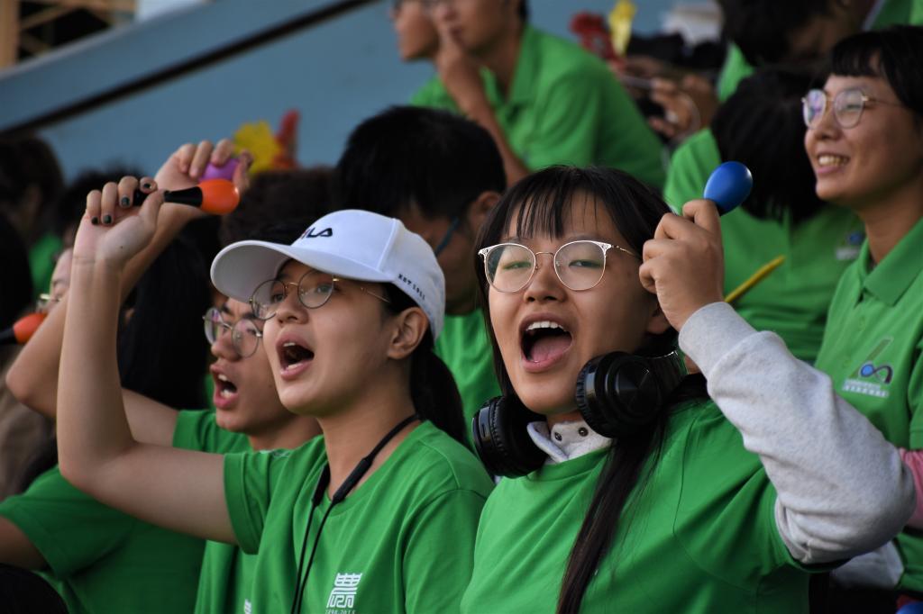 一抹抹绿色汇集成片,连成海洋,五彩的沙锤和小手拍摇动,为运动员助力。他们的目光聚于赛场,心情随着赛况不断起伏。此刻,场上的运动员与场下的观众心连心,共同体味赛场之上的苦与乐。他们欢呼呐喊,渴望尽到自己的一份力。一声声呐喊汇成气吞山河之势,化为赛场上健儿们的力量源泉。运动员们从不孤单,他们的背后有着全院师生的支撑。
