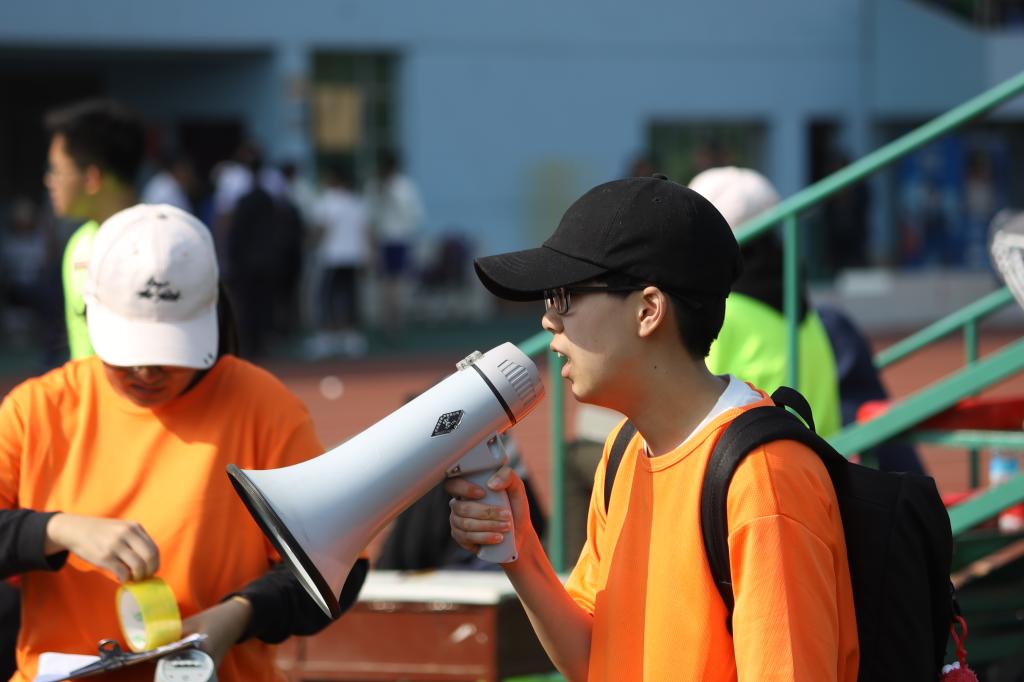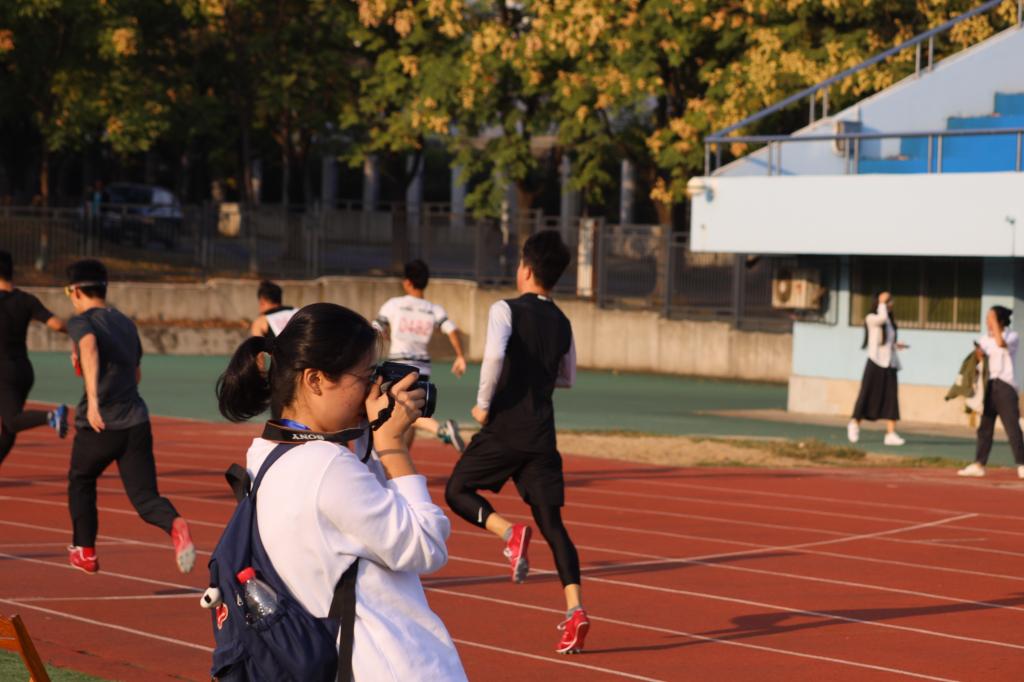 体育部指引运动员检录入场,认真记录、整理每一次比赛信息;女生部在运动会开始前,收拾干净整洁的看台,和结束后留下默默清扫的身影;值班同学带领看台观众们一次次呐喊与加油;赛场边缘,找寻着完美镜头的记者;主席台上,一次次播报成绩的广播员……大家都在属于自己的赛场之上,用自己的方式为这次运动盛会贡献力量,展现别样的风采。那赛场旁的匆匆身影,忙碌而满足。