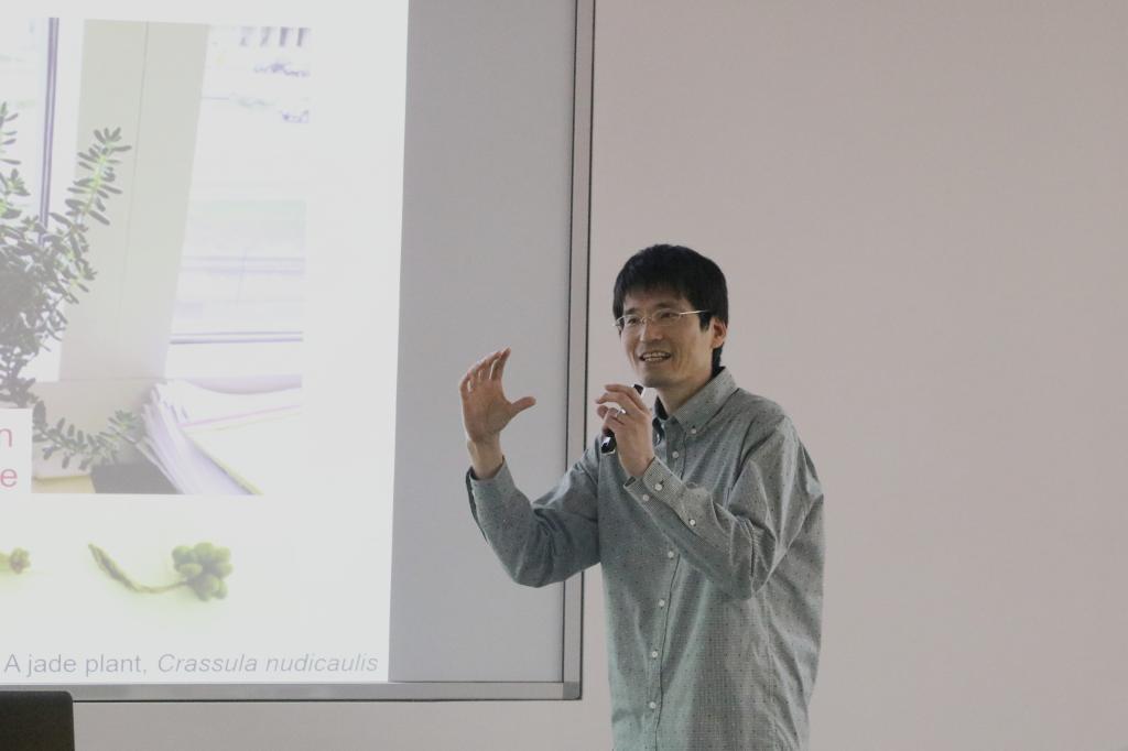 来自日本宇都宫大学的Yusuke Tamada博士向同学们介绍了宇都宫大学,并分享自己的科研成果以及研究方向。宇都宫大学是一所历史悠久,环境优美的国立大学。交流项目中学生可以自由地提出自己的想法,很多有趣的想法可能都能在实验中实现。“付出多少就能得到多少,同学们在交流期间可以自由安排除实验以外的时间,但希望大家在做实验项目期间积极参与,自觉是鞭策自己的唯一方法。”Yusuke Tamada博士提出自己的建议和看法。他十分鼓励同学们大胆分享自己的想法,思想的碰撞对实验创新有很大的帮助。最后他用标准的中文“谢谢”结束了自己的分享。