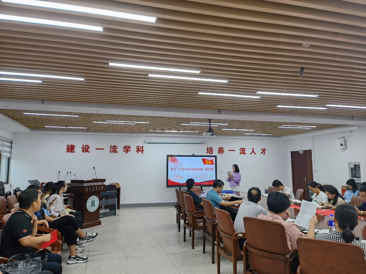 教工党员王利利同志带领大家学习了《习近平谈治国理政》第四卷。她谈到,《习近平谈治国理政》第四卷集中反映了习近平新时代中国特色社会主义思想的最新成果,是前三卷的延续。全文分为21个专题,王利利分别从全面建设社会主义现代化国家新征程的伟大实践、如何统筹疫情防控和经济社会发展、党对共建美好世界的理念和贡献等方面进行了详细的讲解。与会党员通过认真学习,深刻体会到在百年未有之变局的时代背景下,坚持党的全面领导,坚持人民至上、坚持自我革新是中国之治的成功密码。