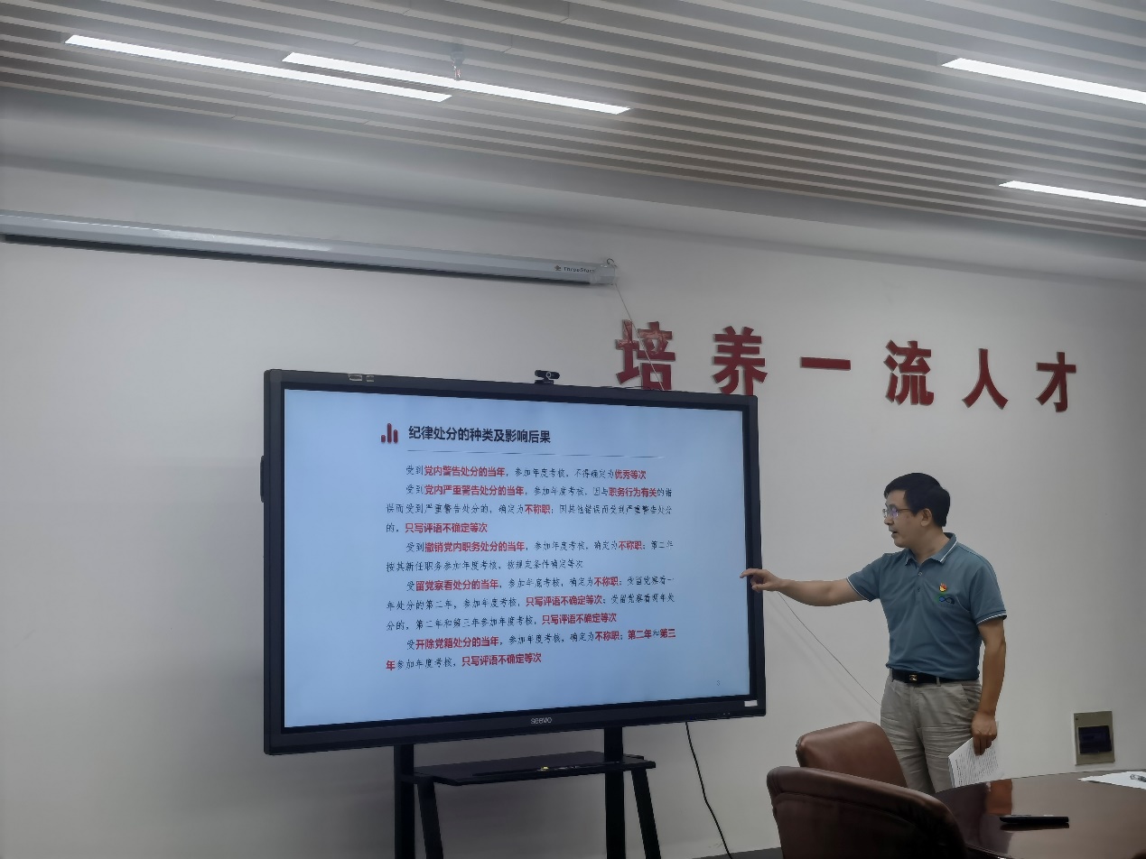 最后,党支部书记严顺平同志讲授廉政专题党课。通过介绍纪律处分的种类及影响后果,学习被罪责问责的典型案例,告诫全体教工党员要知敬畏、存戒惧、守底线。会议还研讨了新学期支部工作计划。