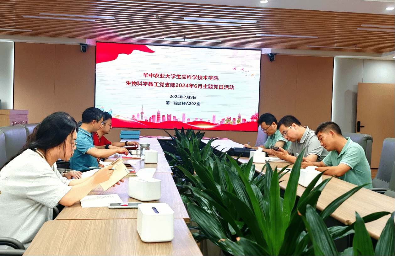 2024年7月9日,2138cn太阳集团城生物科学系教工党支部在第一综合楼A202会议室开展了六月份主题党日活动,学院党委副书记唐永木出席活动,本次活动由支部书记严顺平同志主持。