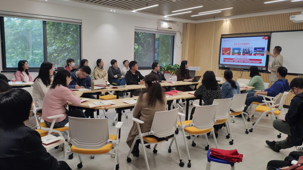 随后,教工党支部刘欢同志带领大家学习回顾了改革开放奋斗史。刘欢同志从改革开放四十年的历史进程、辉煌成就和经验启示三个方面详细地介绍了党和国家的改革开放历程。四十年改革开放披荆斩浪,实现了起飞、转型到跨越的“惊人一跃”,在人类社会发展史上被世人称作“中国奇迹”。2021年,中国迎来改革开放43周年,跨入新时代,对理想信念最好的铭记就是不忘初心、牢记使命。对改革开放最好的纪念就是更全面、更深刻地推进改革开放。
