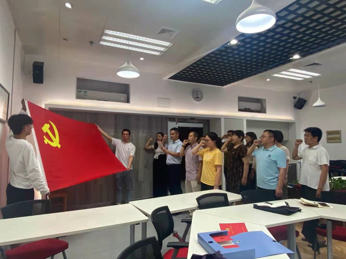 最后,全体党员在郑龙玉同志的带领下,一起重温了入党誓词。我们一定要牢记使命,为中华民族的伟大复兴贡献出一份力量,祝愿我们的祖国越来越繁荣昌盛,人民生活越来越幸福。