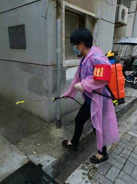8月10日,胸前佩戴党徽的学院党委书记和希顺和岗位科学家何予卿正在西苑小区对垃圾桶进行消杀。在他们的感召下,学院20多名教师党员分三个时段在宝积苑和北苑小区、西苑小区和步行街市场等三个服务点开展疫情防控志愿服务,他们不惧酷暑在社区的安排下努力当好居民服务员、政策宣传员和民意调查员。作物遗传改良国家重点实验室常务副主任袁德军深入住户查访全员核酸检测落实情况,提醒还未接种新冠疫苗的居民尽快进行接种。金安江、范金凤和郑世学等老师在西苑教育超市门口、步行街入口处提醒居民戴口罩,检查行人健康码,郭敏、郑龙玉、梅余霞和张清华等老师提醒广大居民不聚集、少外出,做好自身防护,辅导员李梦源、陈超奇、梅斌和杜媛媛还无时不刻关注着留校学生的疫情防控安全,细心摸排信息并做好防疫宣传和引导。虽然当天下了暴雨,依然没有阻挡老师们的工作热情,自带雨具的陈振夏、彭楠、赵述淼老师都准时出现在学校北门,为进出的居民进行登记信息、测量体温、查验健康码。全员核酸检测之前,下沉党员齐迎春和熊薇戴上社区志愿者红袖章早早地来到西苑核酸采样服务点,为做好全民核酸检测开展引导讲解、秩序维护、信息登记、扫码测温等志愿服务工作,用实际行动助力疫情防控。