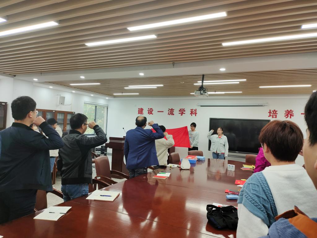 会议的尾声到来,马旖旎同学带领大家重温入党誓词,大家目光灼灼,声音洪亮,语气坚定。到此本次师生联合主题党日活动圆满结束。