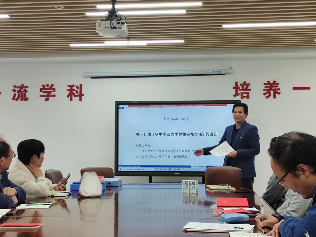 紧接着,和希顺书记对《2138cc太阳集团师德考核办法》做出简明扼要的概括,并就年度考核、把关考核、引进类师德考核三个考核方面阐述了师德的重要性。他教导我们各方面的综合素质更能反应你身为党员是否合格,要把师德师风建设放在首要地位。各位老师和同学纷纷点头表示认同。