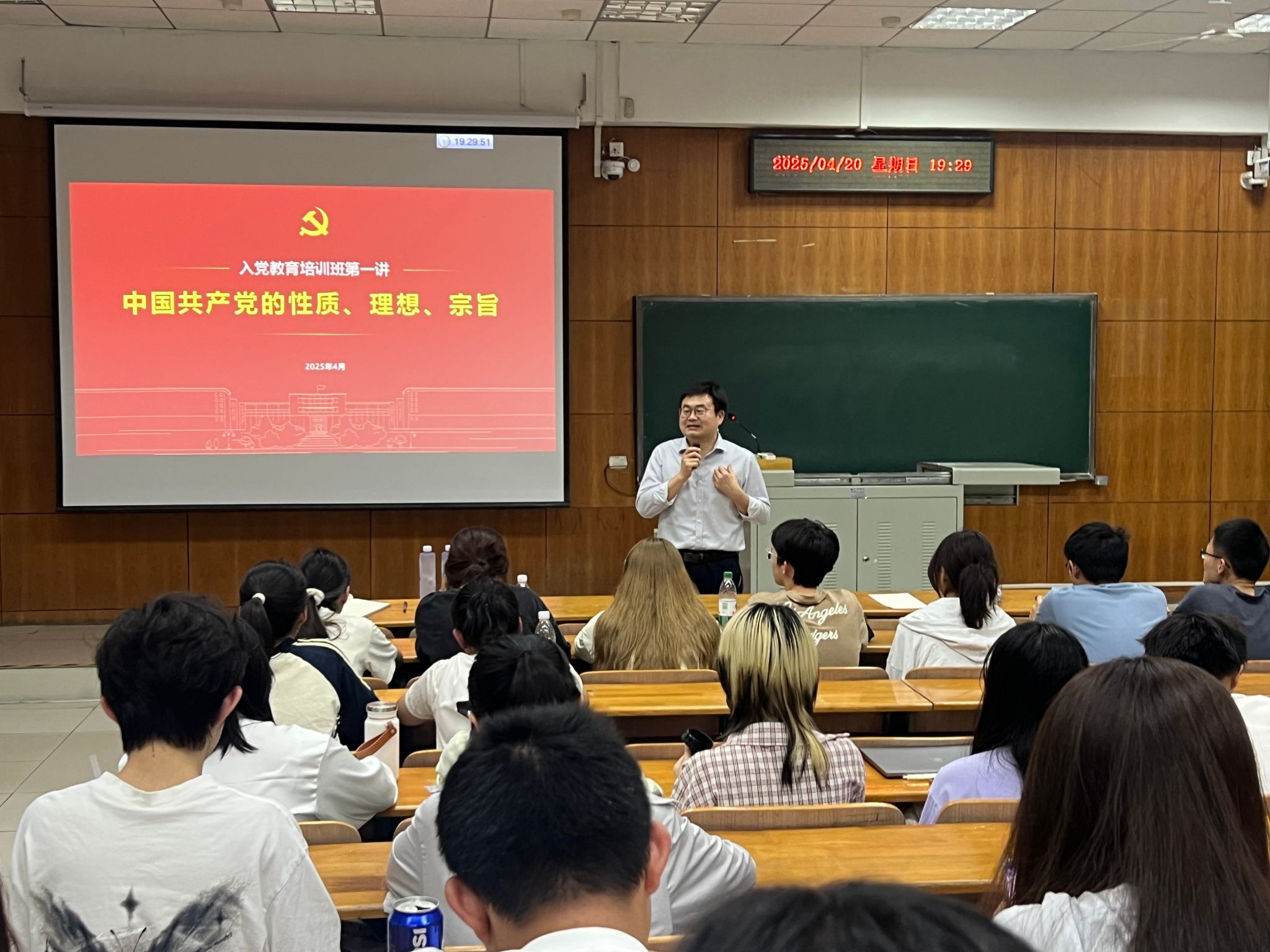 (通讯员 林铭洲 王庆鲁)4月20日晚,学院分党校在三教A105教室举行第87期党的基本知识培训班第一次线下专题讲授。植物科学技术学院党委书记周雄受邀讲授《中国共产党的性质、理想和宗旨》课程。学院分党校副校长、党委副书记唐永木,本科生太阳集团辅导员王庆鲁,培训班全体学员130余名本科生、研究生入党积极分子参加专题学习。