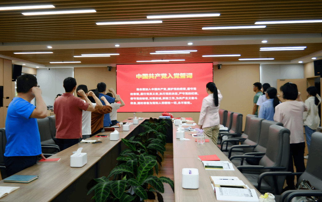 图 3 全体党员面向党旗,庄严重温入党誓词(吴业鑫 摄)