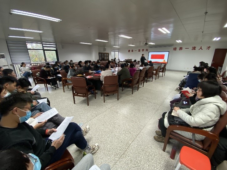 为深刻学习十九届五中全会精神,主持人吴钰静同学特意给了大家三十分钟时间,一齐研读重要文件《中共中央关于制定国民经济和社会发展第十四个五年规划和二〇三五年远景目标的建议》。在讨论交流环节,陈莎莎同学率先发言,她就文件“深化农村改革”部分出发,谈到我国这些年来取得的可喜的成果,也对现存粮食安全问题表达担忧。随后,严顺平老师作出回应。他表示,对于粮食安全问题,我们每个学生、老师都有机会作出贡献,另外他还注意到,在文件的“坚持科技创新驱动发展,全面塑造发展新优势”部分,对前沿领域的表述中有“生命健康”、“脑科学”、“生物育种”三项是与我们专业息息相关的,他说:“要完成文件对我们的期望,首先要做到‘学生把学习搞好,老师把科研教业工“要完成文件对我们的期望,首先要做到‘学生把学习搞好,老师把科研教业工作搞好’。” 王嘉薇同学对此作出补充,她说,最近几年国家大力发展基础学科建设,支持构建综合性国家科学中心和区域性创新高地,这对于学习基础学科的我们无疑是一次很好的机遇,我们现阶段作为大学生,应该先做好学科基础建设,将来才能更好地利用这些资源和平台,为国家奉献自己的力量。骆博宇同学则关注到了文件另一方面,“繁荣发展文化事业和文化产业,提高国家文化软实力”的内容,他就最近社会上的三个热点事件“雷霆战将不顾客观历史拍成偶像剧”、“国家禁止污点艺人复出”、“南京大学新生社团活动悬挂旭日旗”发表看法,提出我国意识形态与文化建设尚存漏洞,需及时发现与解决的观点。