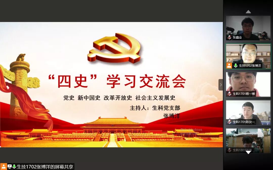 2021年3月11日16:30分,生物科学本科生党支部于线上开展“四史”学习交流会活动,旨在以“四史”主题读书、观影交流会的形式让党员们相互交流自己在寒假期间阅读、观看的“四史”相关书籍和纪录片、影片。本次活动由生物科学本科生党支部副书记张博洋主持,借助腾讯会议网络平台召开。