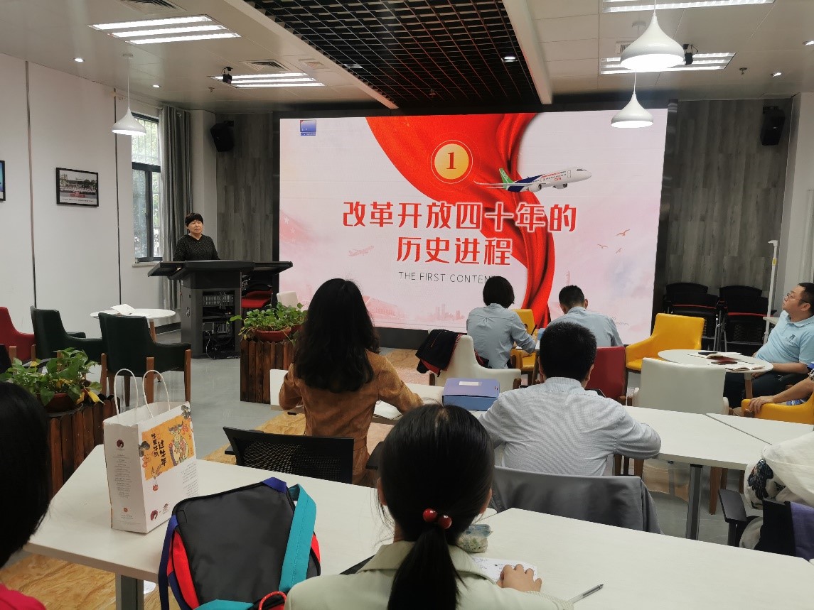 会议伊始,陈雯莉教授带领大家一起学习了改革开放史,讲述了改革开放四十年的历史进程、辉煌成就和经验启示。40年改革开放劈波斩浪,实现了起飞、转型到跨越的“惊人一跃”,在人类社会发展史上被世人称作“中国奇迹”。实践充分证明改革开放是发展中国特色社会主义、实现中华民族伟大复兴的必由之路;只有社会主义才能救中国,只有改革开放才能发展中国、发展社会主义、发展马克思主义。跨入新时代,对理想信念最好的铭记就是不忘初心、牢记使命,对改革开放最好的纪念就是更全面、更深刻地推进改革开放。我们也坚信,随着改革开放的不断深入和发展,中华民族必将实现真正的伟大复兴。
