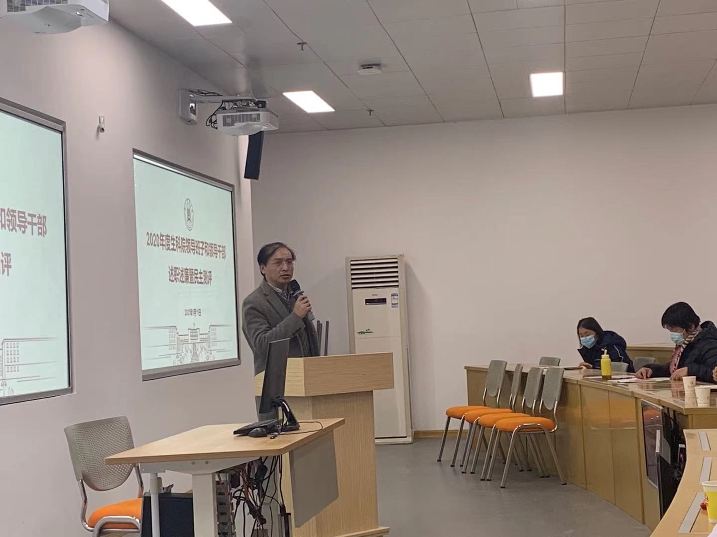 (通讯员 周诚晨)2021年1月11日下午,生科院在第一综合楼A102会议室召开全院教职工大会,因疫情防控需要,会议在一综A202、316会议室设线上直播分会场。学院领导班子和领导干部进行了述职述廉。会议由生科院党委书记和希顺主持,校长李召虎出席会议并讲话。