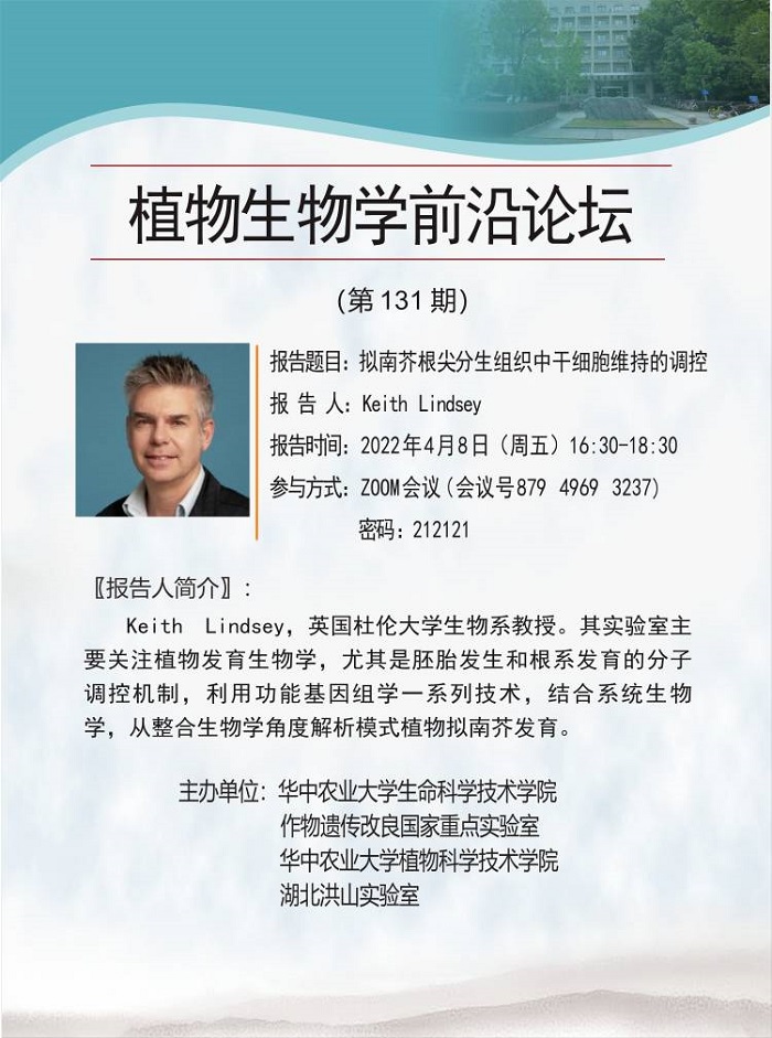 活动时间 报告题目 拟南芥根尖分生组织中干细胞维持的调控
