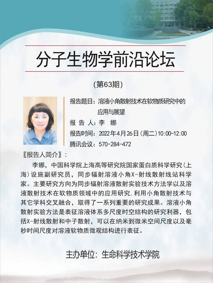 活动时间 报告题目 溶液小角散射技术在软物质研究中的应用与展望