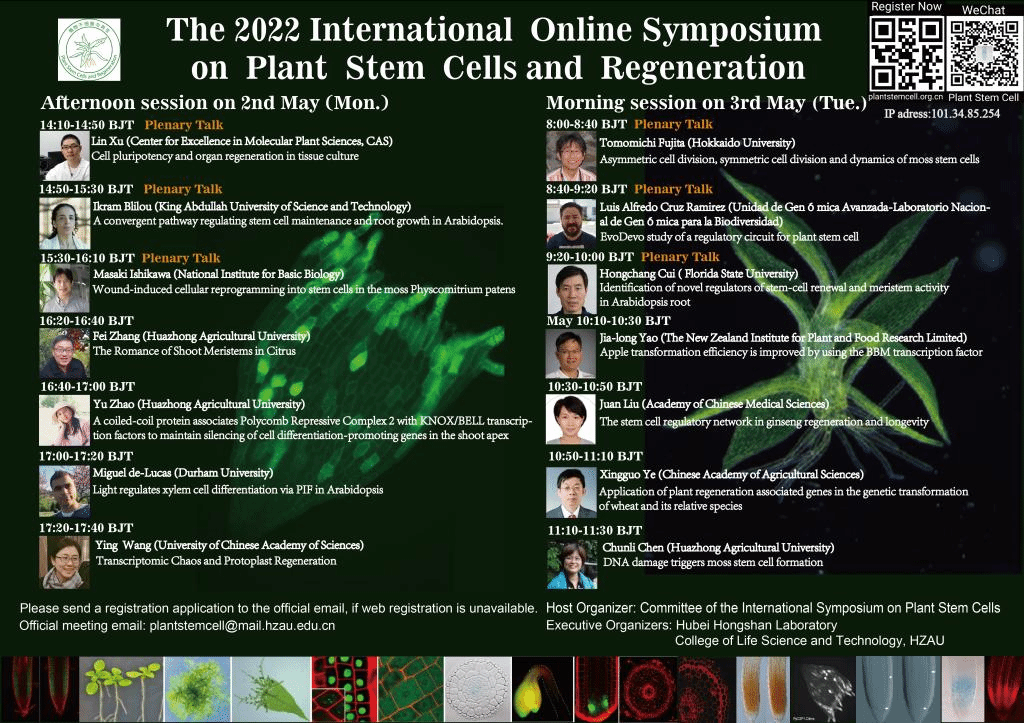 请点击会议网站进行注册,如网站无法注册请发送姓名等信息至组委会邮箱(Email:plantstemcell@mail.hzau.edu.cn)获取会议地址。