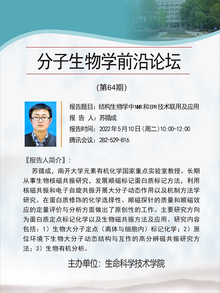 活动时间 报告题目 结构生物学中NMR和EPR技术联用及应用
