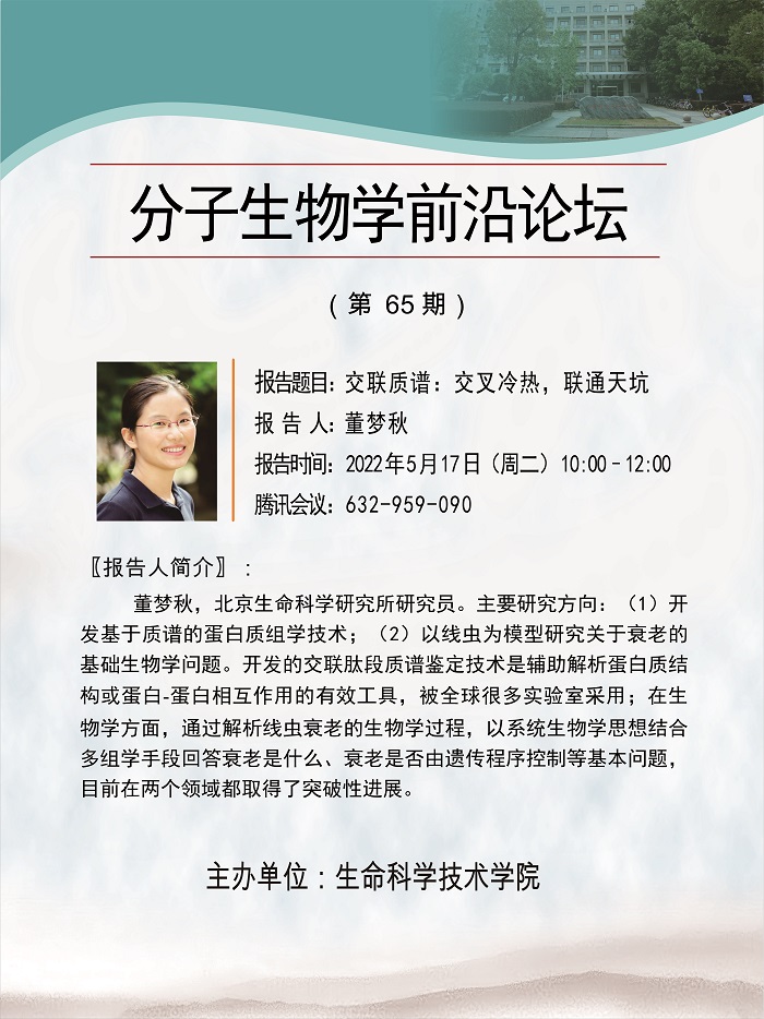 活动时间 报告题目 交联质谱:交叉冷热,联通天坑