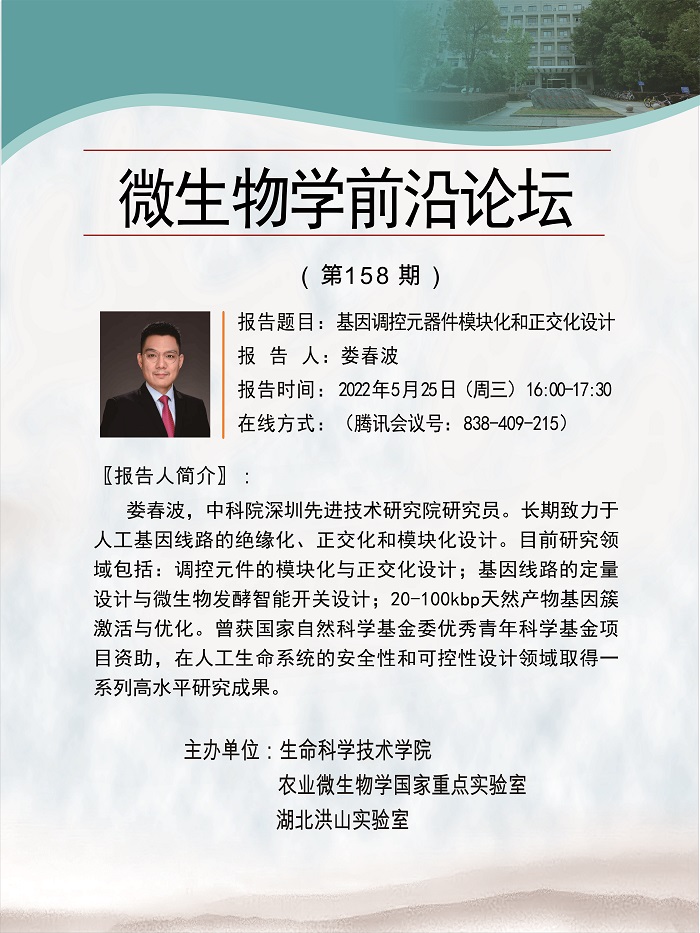 活动时间 报告题目 基因调控元器件模块化和正交化设计