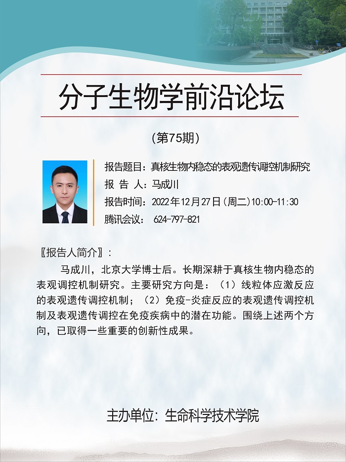 活动时间 报告题目 真核生物内稳态的表观遗传调控机制研究