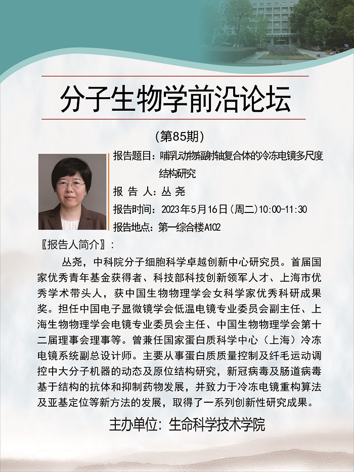 活动时间 报告题目 哺乳动物辐射轴复合体的冷冻电镜多尺度结构研究