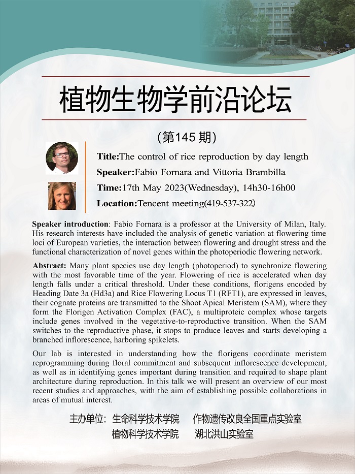 中国·湖北·武汉 南湖狮子山街一号430070 Tel:+86-27-87287308 E-mail:bio@mail.hzau.edu.cn
