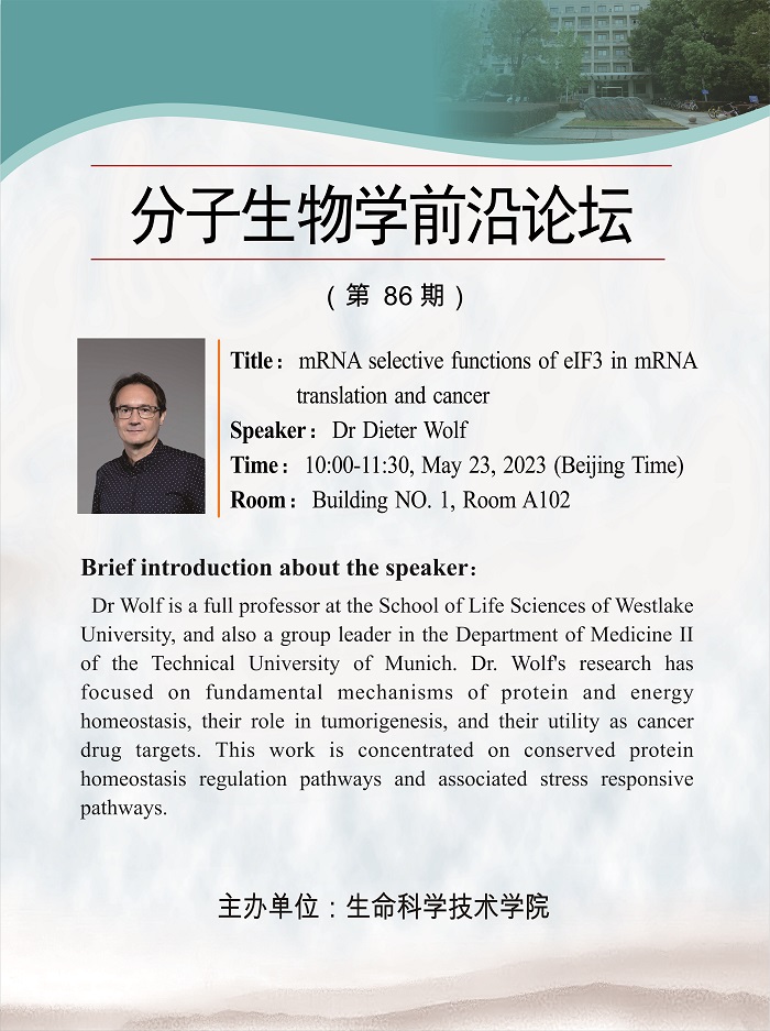 活动时间 报告题目 mRNA selective functions of eIF3 in mRNA translation and cancer