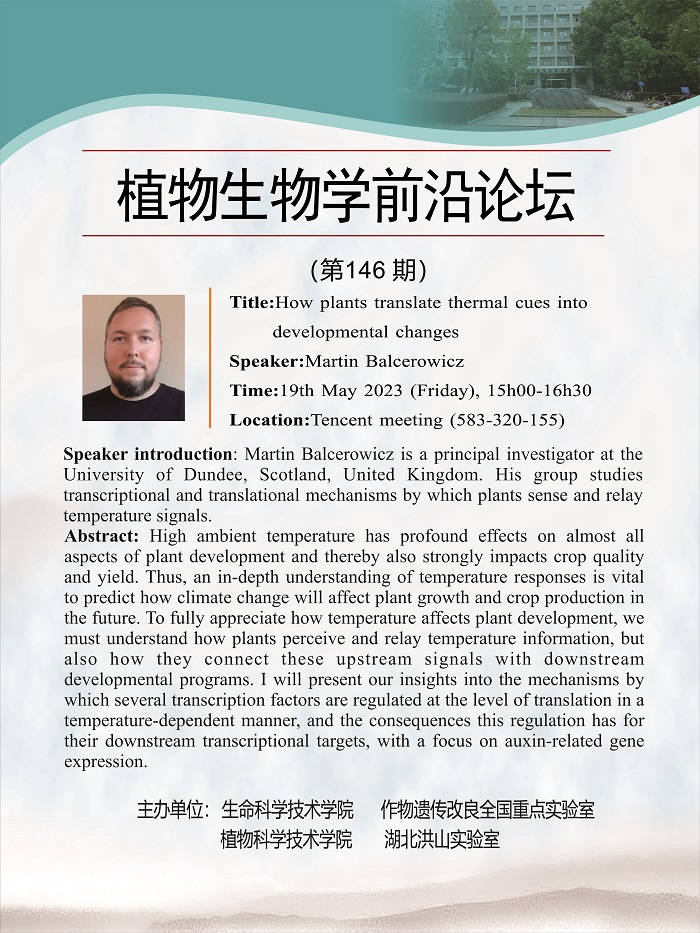 活动时间 报告题目 How plants translate thermal cues into developmental changes