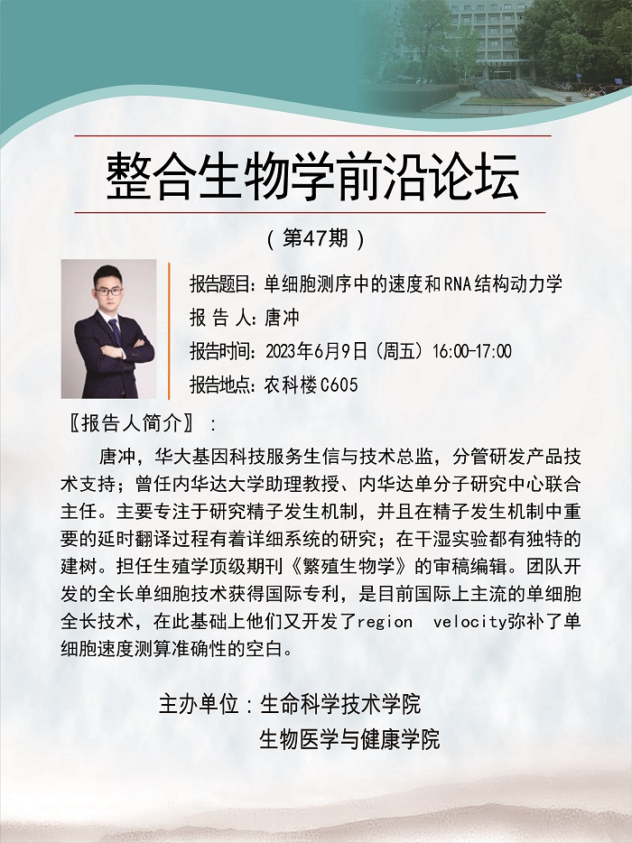 活动时间 报告题目 单细胞测序中的速度和RNA结构动力学