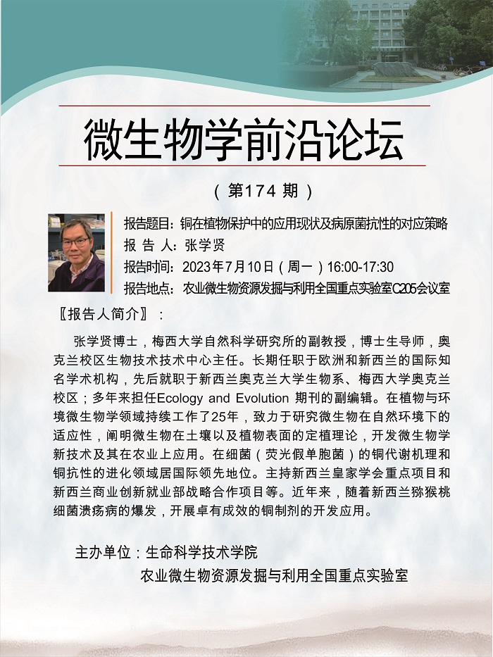 活动时间 报告题目 铜在植物保护中的应用现状及病原菌抗性的对应策略