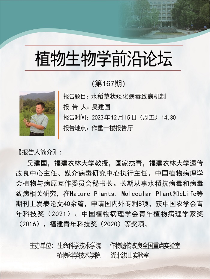 活动时间 报告题目 第167期植物生物学前沿论坛