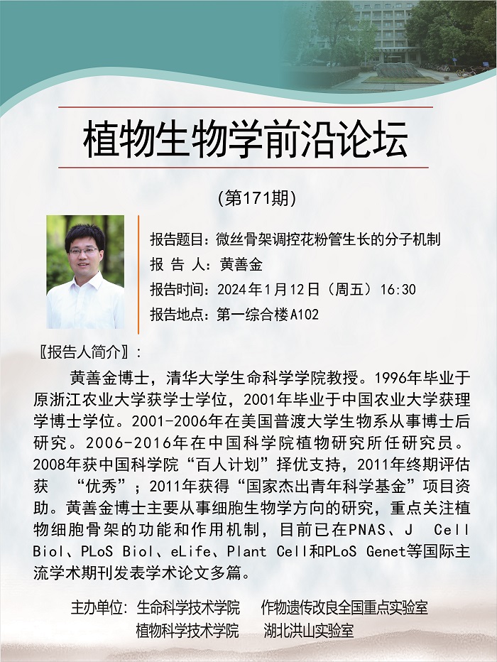 活动时间 报告题目 第171期植物生物学前沿论坛