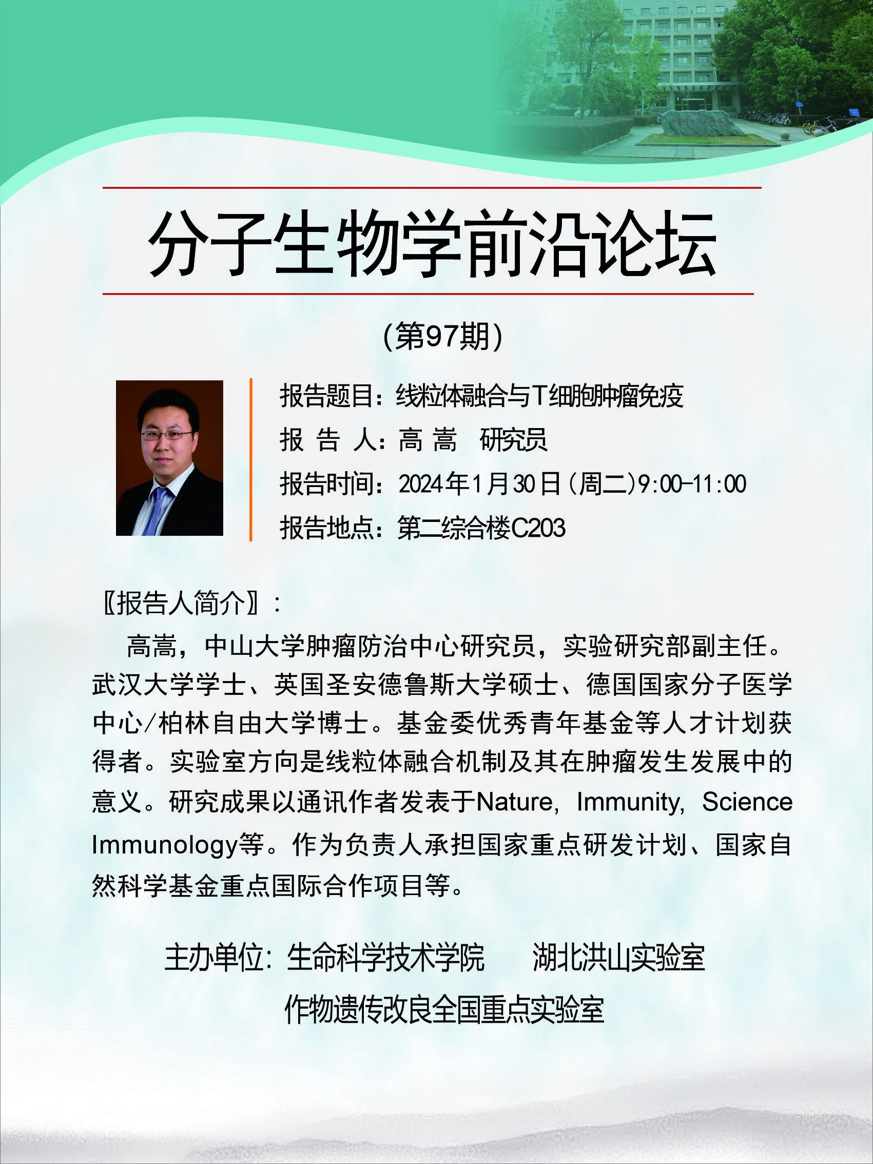 活动时间 报告题目 第97期分子生物学前沿论坛