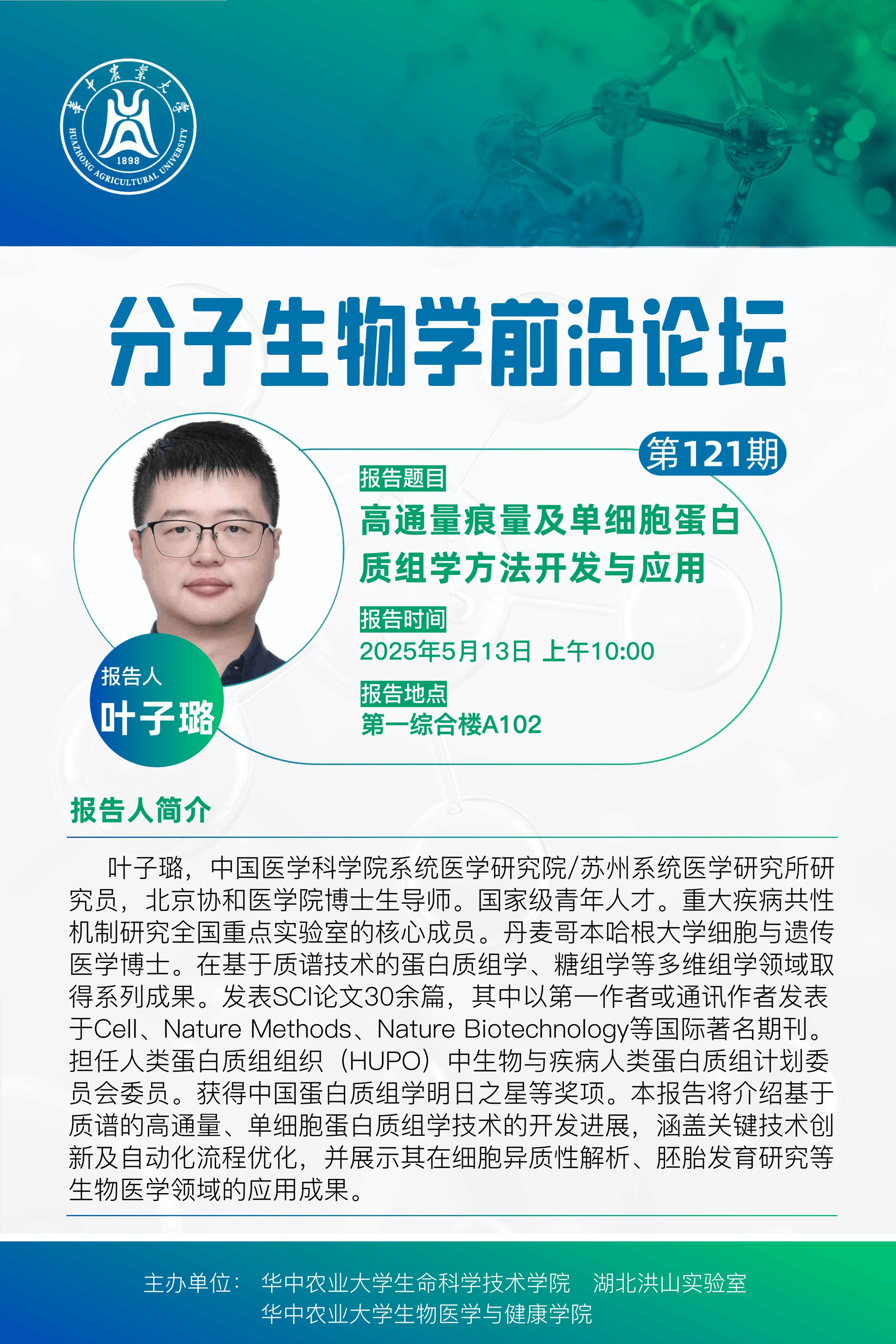 活动时间 报告题目 第121期分子生物学前沿论坛