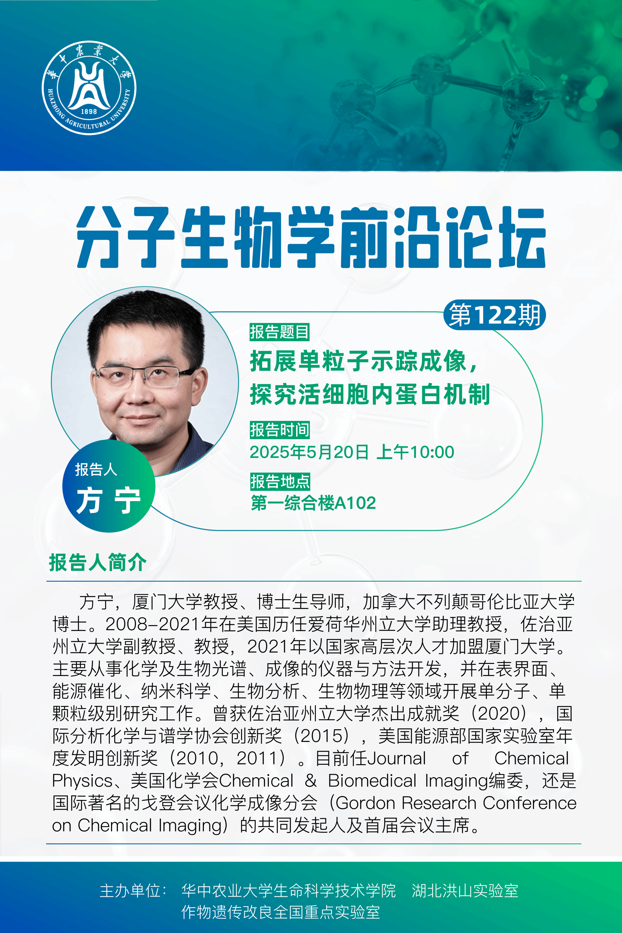 活动时间 报告题目 第122期分子生物学前沿论坛