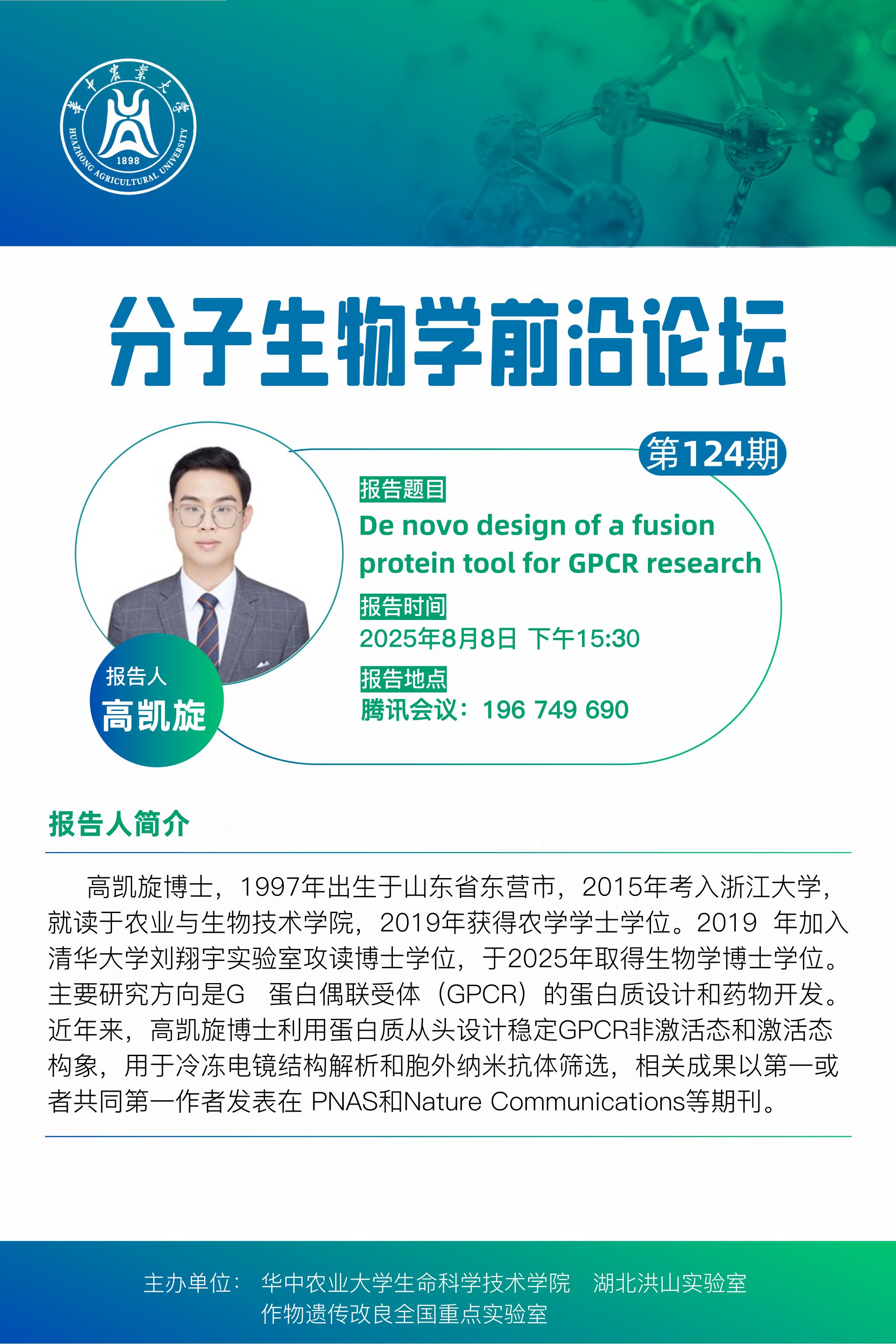 活动时间 报告题目 第124期分子生物学前沿论坛
