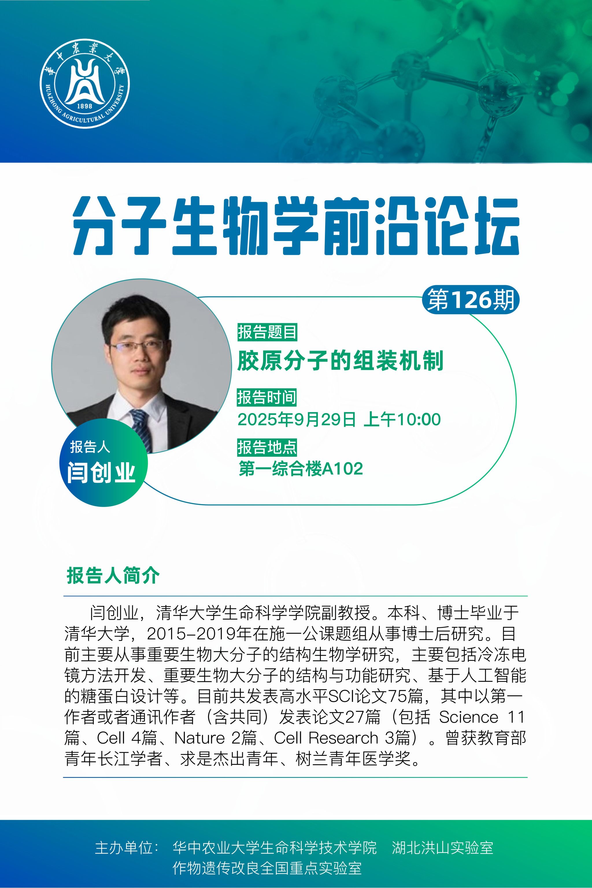 活动时间 2025年9月29日 10:00 报告题目 第126期分子生物学论坛