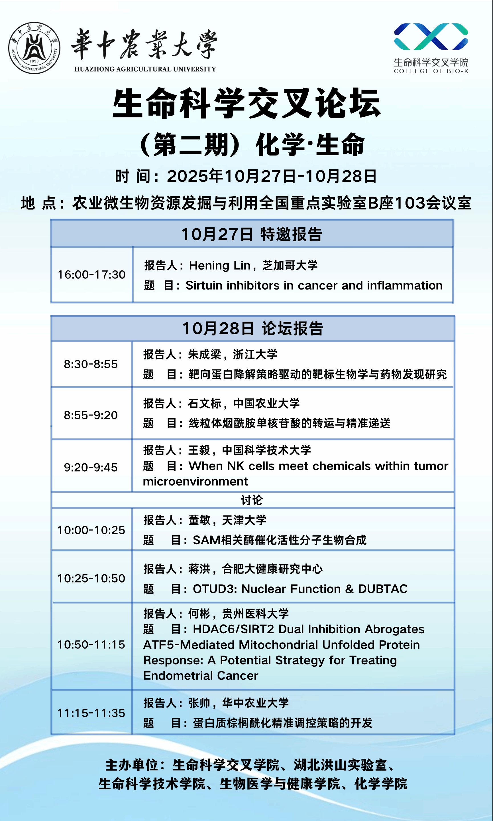 活动地点 农业微生物资源发掘与利用全国重点实验室B座103报告厅 报告人 Hening Lin等